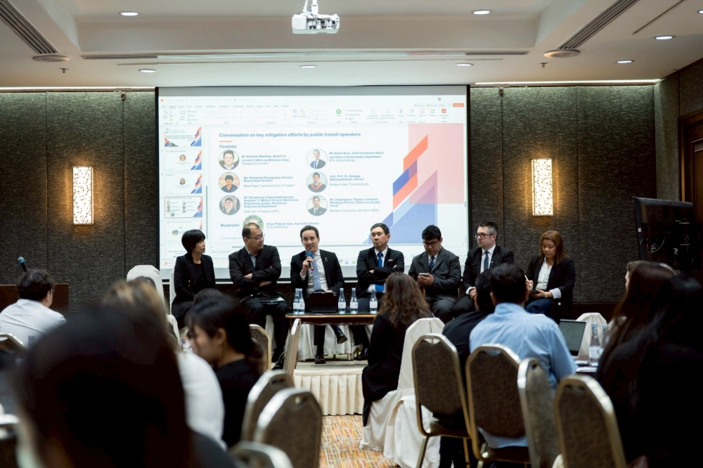On 26 November 2025, Mr. Daniel Ross, Chief Investment Officer and Head of Sustainability Development of BTS Group Holdings Public Company Limited (BTS Group), participated in a panel discussion at the ‘UN Habitat World Sustainable Transport Day – Towards Climate-Just Futures: Decarbonisation in Bangkok Transport’ held at Century Park Hotel. The event featured participation from Mr. Apichart Suphajitsawat, Director of the Transport System Office, Traffic and Transport Department; Mrs. Anna Catherine Pearson, Economic and Sustainable Development Counsellor of the British Embassy Bangkok; and Mr. Jack Crawford, Economic Affairs Officer, Transport Division, UNESCAP. The discussion highlighted Thailand’s progress in advancing sustainable and inclusive urban mobility, as well as sharing best practices among public transport operators in reducing greenhouse gas emissions and in mitigating environmental impacts.