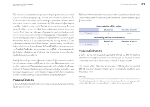 โบนัสประจาปี ซ่งจะสอดคล้องกับสภาวะเศรษฐกิจและผลการดาเนินงานของบริษัทฯ และ BTS-WD ให้แก่ผู้บริหารของบริษัทฯ ที่ไม่ใช่กรรมการ จานวนรวมท้งสิ้น 666,666 หุ้น มูลค่า