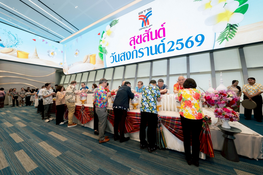 วันที่ 10 เมษายน 2569 กลุ่มบริษัทบีทีเอส นำโดยนายคีรี กาญจนพาสน์ ประธานกรรมการ นำคณะกรรมการ และผู้บริหาร จัดกิจกรรมรดน้ำขอพร เนื่องในเทศกาลสงกรานต์ และวันขึ้นปีใหม่ไทย ประจำปี 2569 ณ ห้อง Auditorium ชั้น 33 อาคารบีทีเอส วิชันนารี ปาร์ค โดยมีพนักงานกลุ่มบริษัทบีทีเอส เข้าร่วมรดน้ำขอพรเพื่อความเป็นสิริมงคล และสืบสานประเพณีไทยอันดีงามอย่างพร้อมเพรียง พร้อมทั้งแต่งกายด้วยเสื้อลายดอกสีสันสดใส ท่ามกลางบรรยากาศที่อบอุ่น เต็มไปด้วยรอยยิ้มและความผูกพันของครอบครัวบีทีเอส